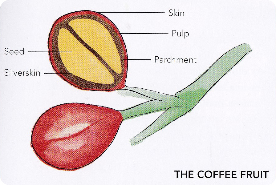 Az érett kávécseresznye körülbelül egy szőlőszem méretű, meglepően ízletes, talán enyhén sárgadinnyére emlékeztető édes ízzel, finom frissítő savassággal jellemezhető. A gyümölcs húsa elég vékony, a termés nagy részét a belsejében elhelyezkedő magok uralják. A frissen szedett kávécseresznye az ültetvényen még egészében is fogyasztható, mert oly nagy a nedvesség tartalma, hogy a magok még puhák benne. A kávécseresznye aszalt gyümölcshúsát "cascara"-ként te is megkóstolhatod.